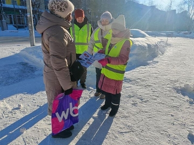 На пешеходном переходе по ул. Энтузиастов 49, напроив школы, они раздавали листовки и напоминали правила перехода через дорогу.