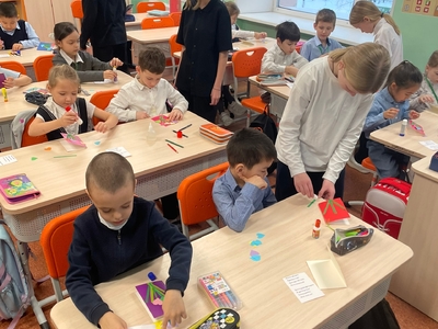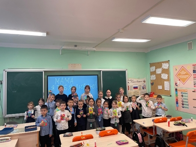 В рамках проекта «Движения Первых» ученики 5‑х классов провели для первоклассников душевный мастер‑класс «Открытка для мамы», приуроченный ко Дню матери.