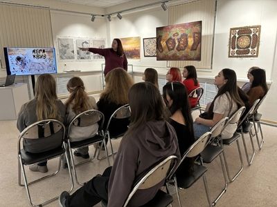 Ребята увидели, как творчески переосмысливаются события прошлого и настоящего. Древняя история Югры заиграла новыми красками через призму современного искусства!